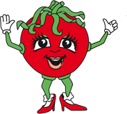 Als Cocktailtomate ist sie besonders chic und modebewußt, man beachte die tollen Pumps, die lockige Frisur und das Makeup ... Sie ist immer fröhlich und gutgelaunt.